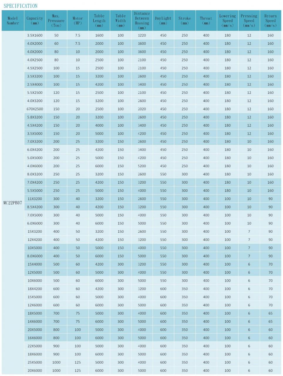 | 項目編號 | MC22PB07 | 力量 | 液壓 |