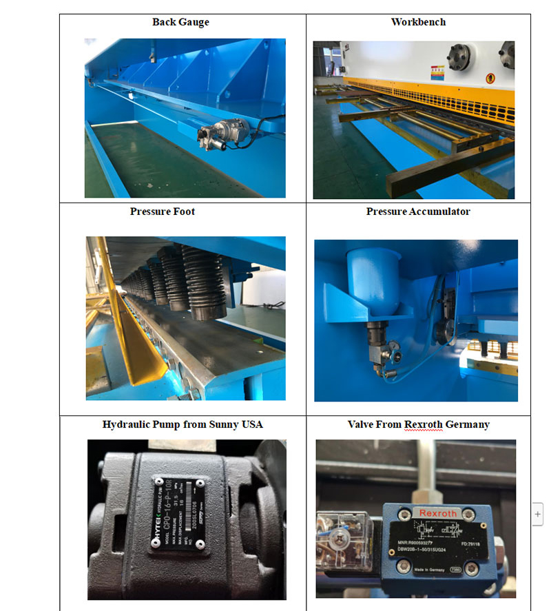 4. 葉片橫梁運動軌跡向前傾斜於底部葉片支撐面,可獲得精細的剪切面。頂部刀片的頂起螺釘提供微調,以最大限度地減少材料剪切邊緣上的“碎屑”或“毛刺”。壓緊組件採用蝶形彈簧。壓板的壓緊裝置上有防滑腳跟塊。壓力較大,但不會損壞鈑金表面。