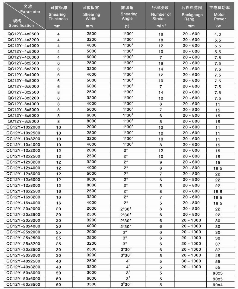 - 剪切角:30°~1°30、30°~1°45、30°~2°、30°~2°30、1°30~3°、1°30~3°30、1°30~4 °