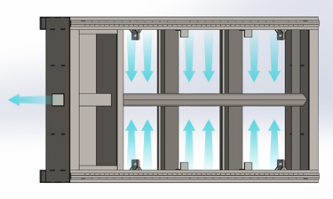 使用我們的分區煙塵排放系統享受更好的切割環境。每個吸入口獨立打開和關閉以排出特定區域的煙霧,大大提高了除煙效率。